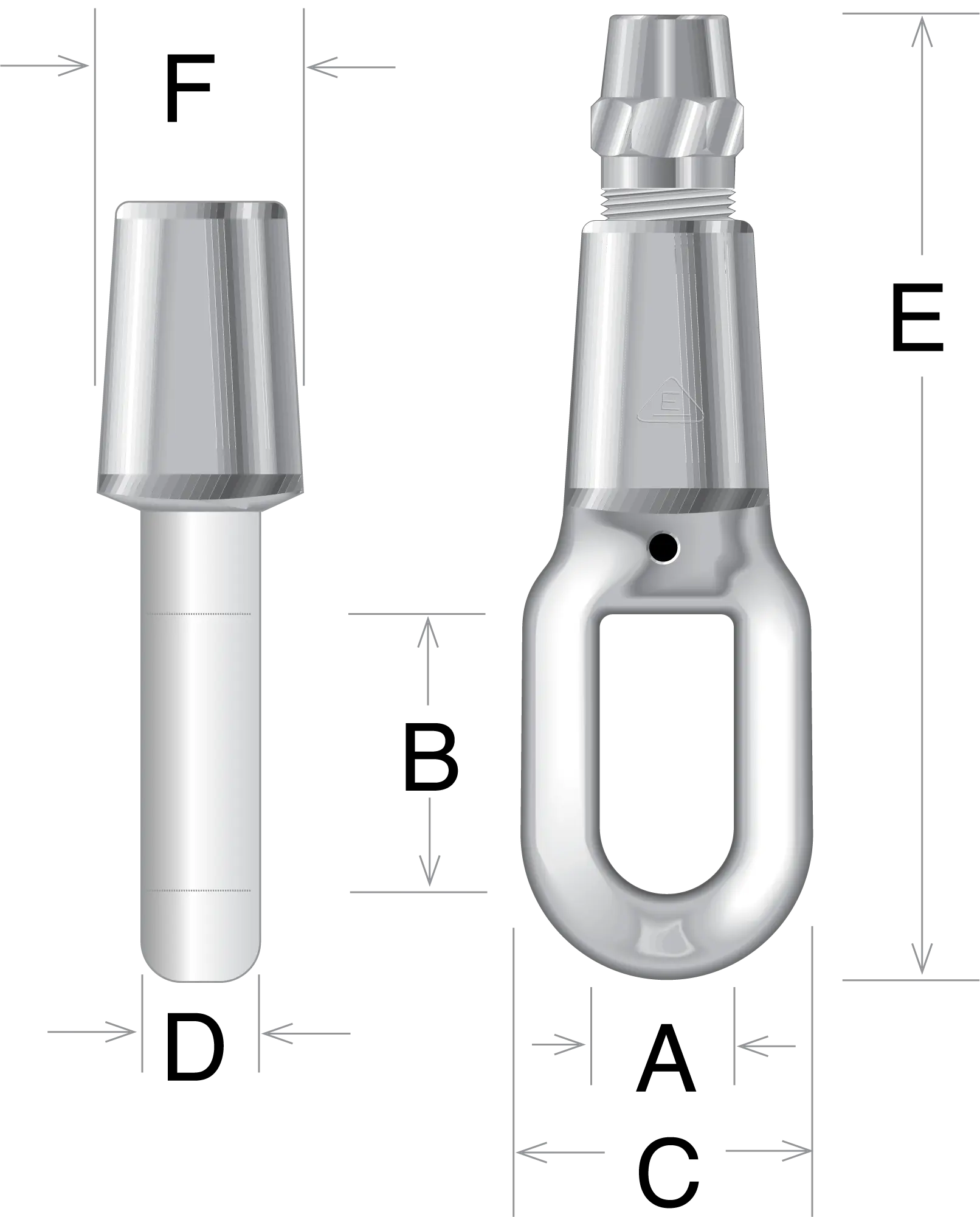 Electroline’s oval eye wire rope fitting features a swageless rope termination, enabling quick field installation without special tools or processes.