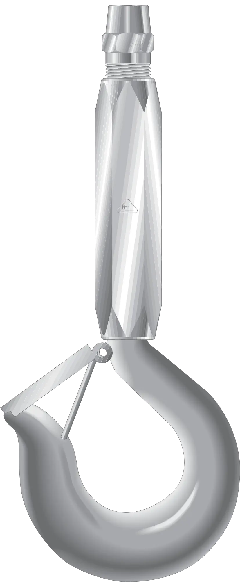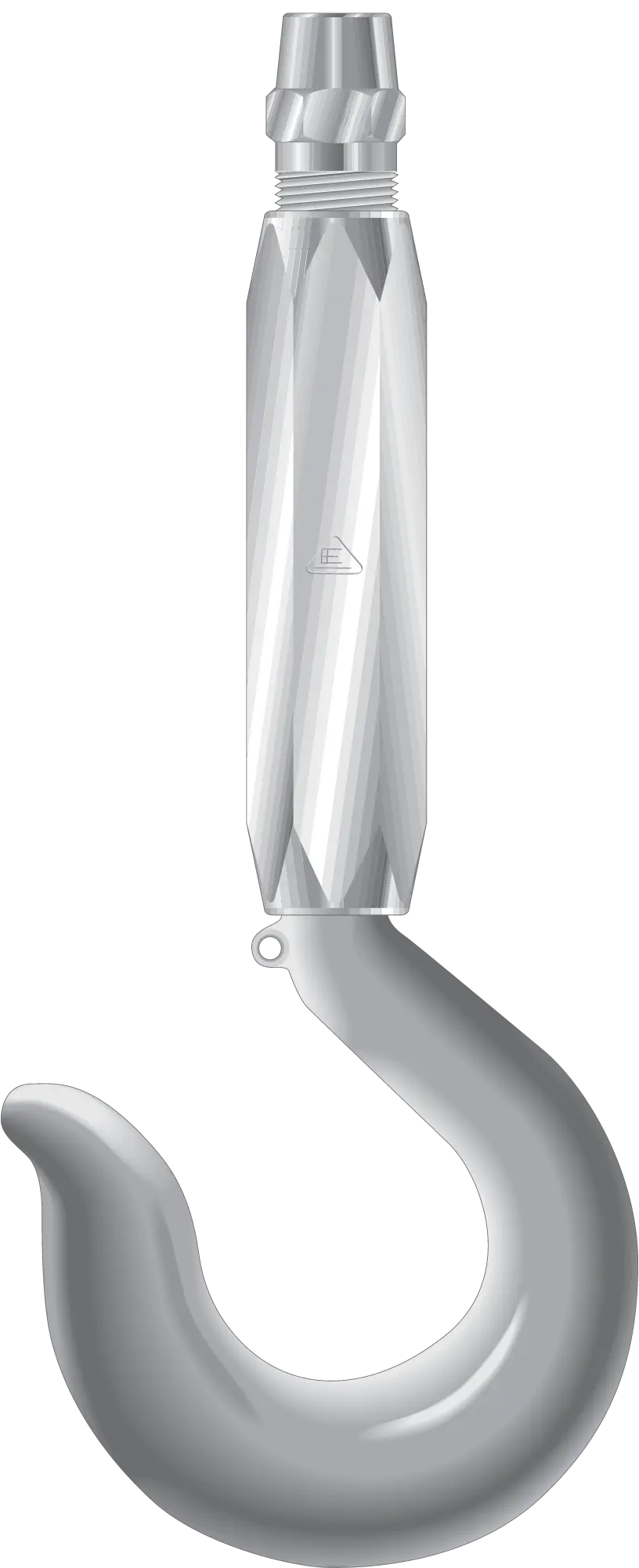 Electroline’s hook fittings are designed for lifting applications. It attaches directly to the end of a wire or synthetic rope, creating an in-line connection that eliminates the need for swaged loops, clevises, or other hardware.