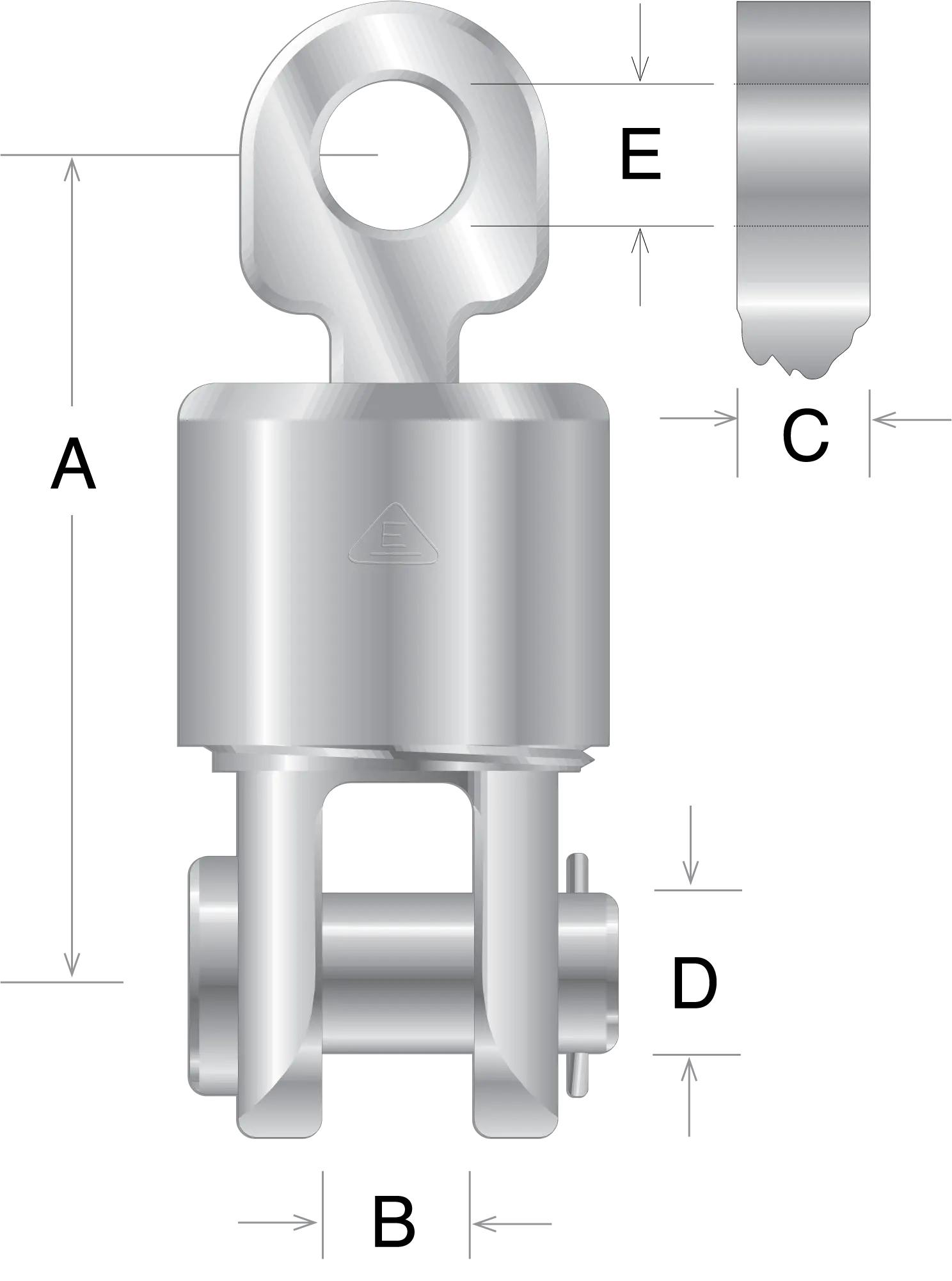 | Dim. A | Dim. B | Dim. C | Dim. D - Pin | Dim. E |