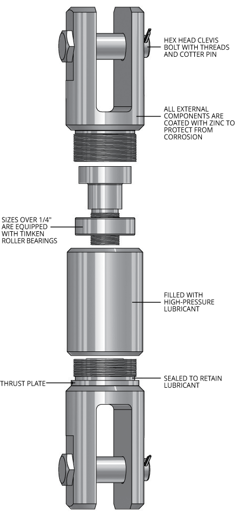 Featuring a permanently lubricated single roller bearing, Electroline's 3000 Series Swivels are an economical option for the smooth rotation of shorter cables. These swivels are ideal for lifting equipment and other applications that do not require the lower torque of ball bearing swivels.