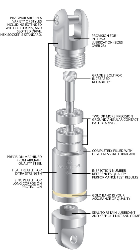 - Swivels can be custom-designed and manufactured for unique applications.